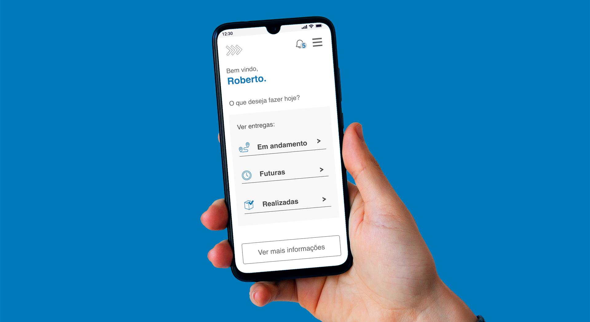 Decidimos criar três opções de acesso ao aplicativo: com login, por meio do número de entrega ou por um link. Quando o usuário faz login, funcionalidades adicionais são disponibilizadas.